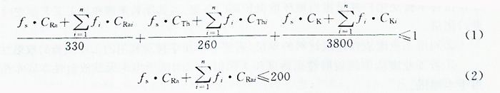 (2)建筑材料用工業(yè)廢渣的放射性物質(zhì)限制標準為:其中226Ra、232Th、40K的放射性活度應(yīng)同時滿足式(1)和式(2)。